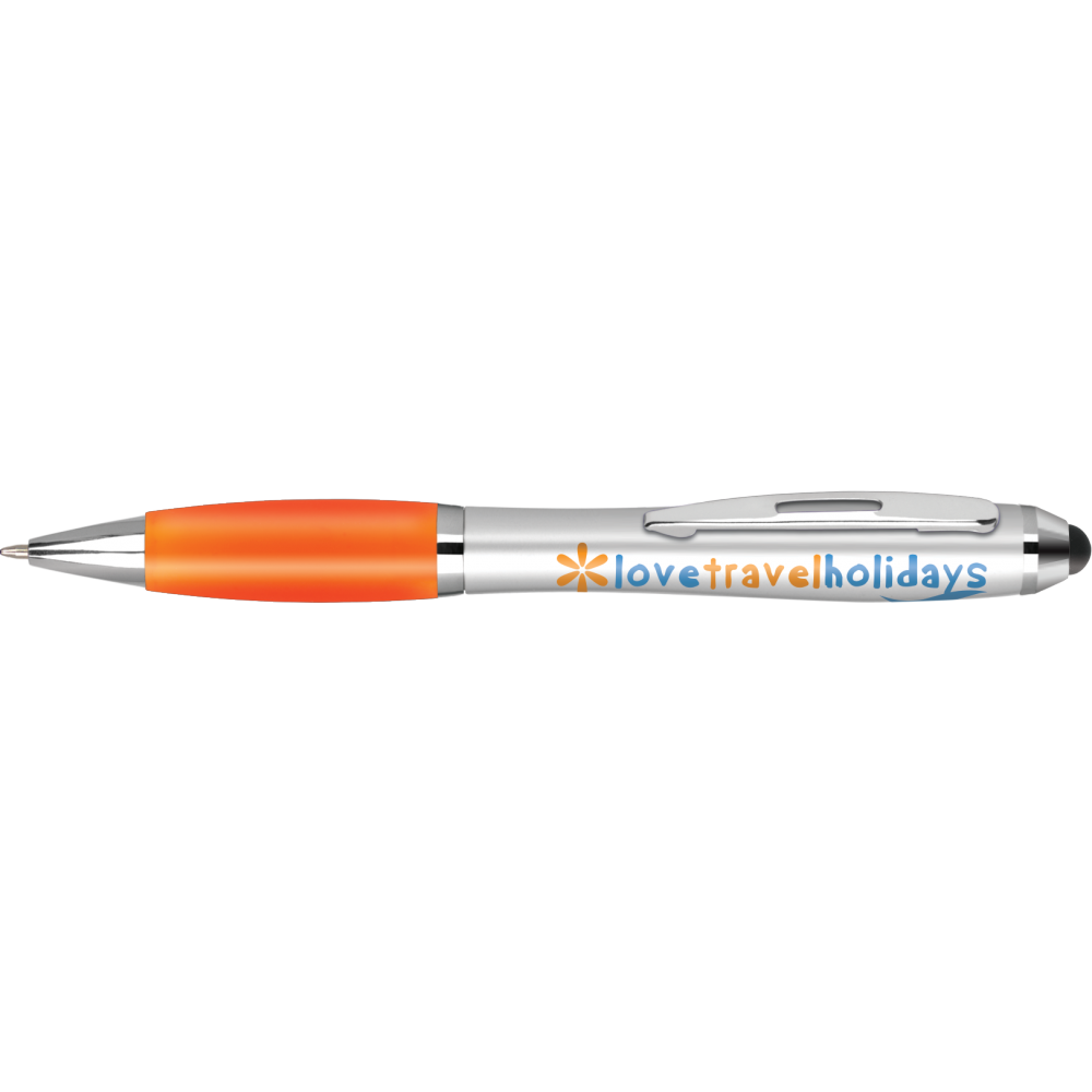 Retractable Ballpen with capacitive stylus. Satin silver finish, chrome trim and comfrotable rubberised grip.