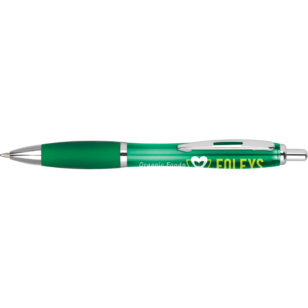 Attractive push-button retractable ballpen with translucent body, chrome fittings and a comfortable matching coloured rubber grip. Colour range includes 10 popular colours.